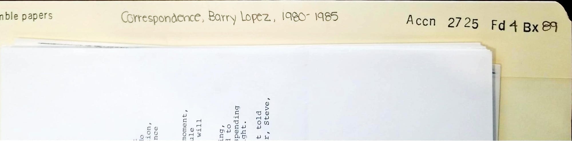 But the very first thing I opened was something else. A folder of correspondence from Barry Lopez looked irresistible. I followed my hunch.